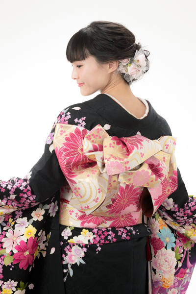 着物・振袖ならではの華やかな帯結びと髪飾りを写真に撮って一緒に残しておきましょう。