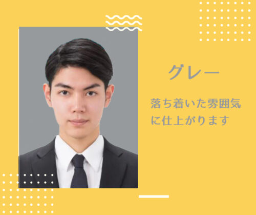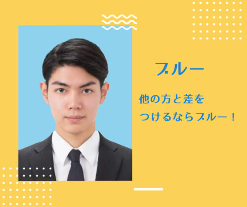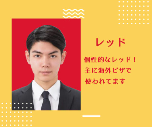 国内の一般的な証明写真に使うとかなり強烈な個性が出ます。一般企業へ提出する写真では他の色にしましょう。