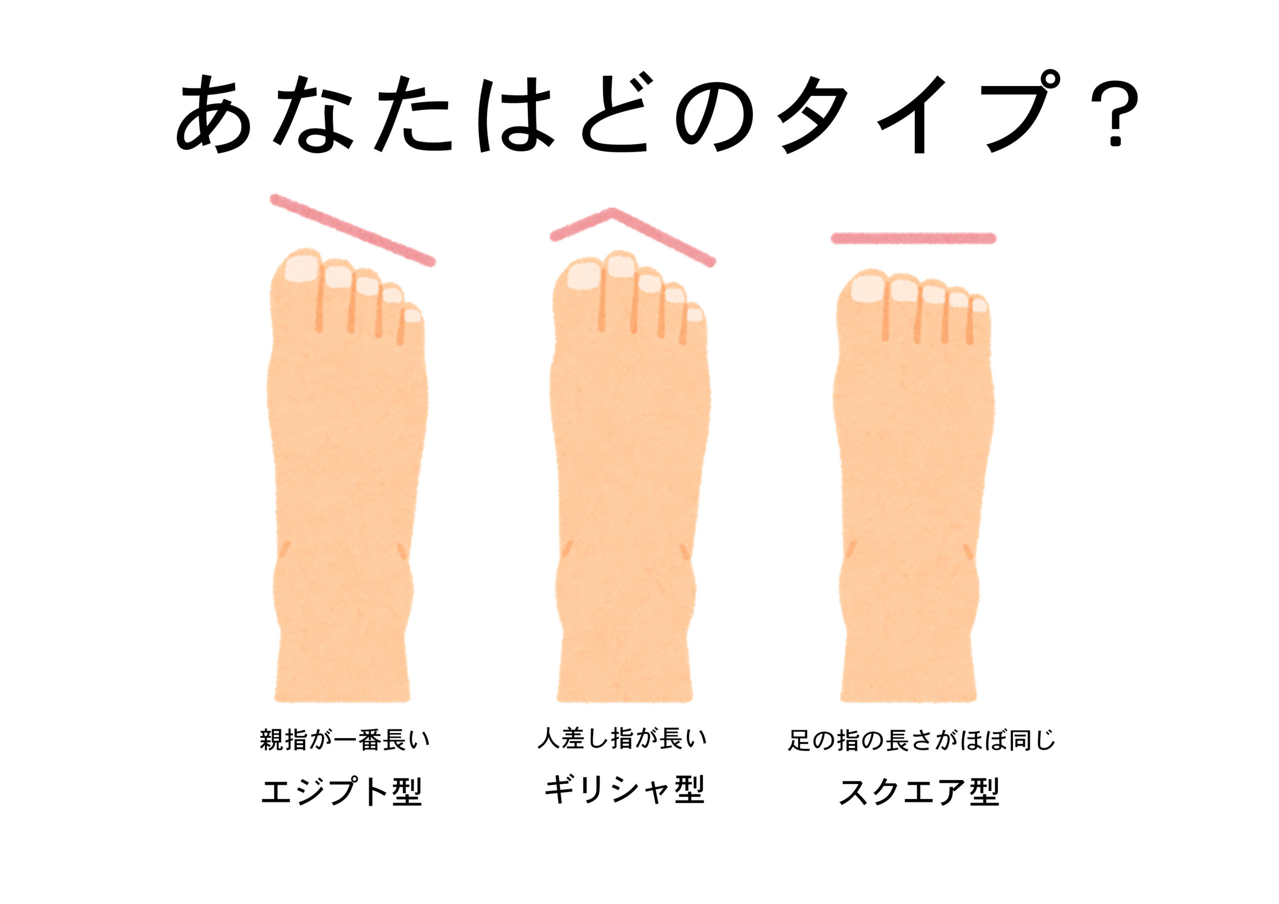 日本人のつま先の形は大きく分けて3タイプに分類されます。