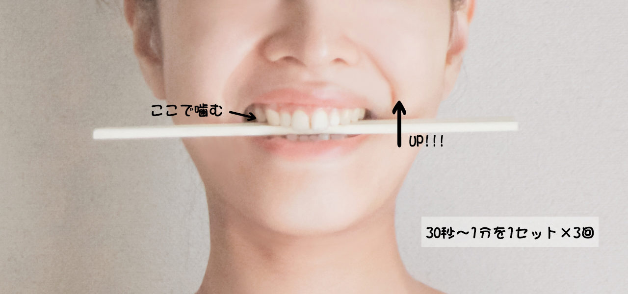 ・割り箸の横のラインより上になるように、口角を上げる。
