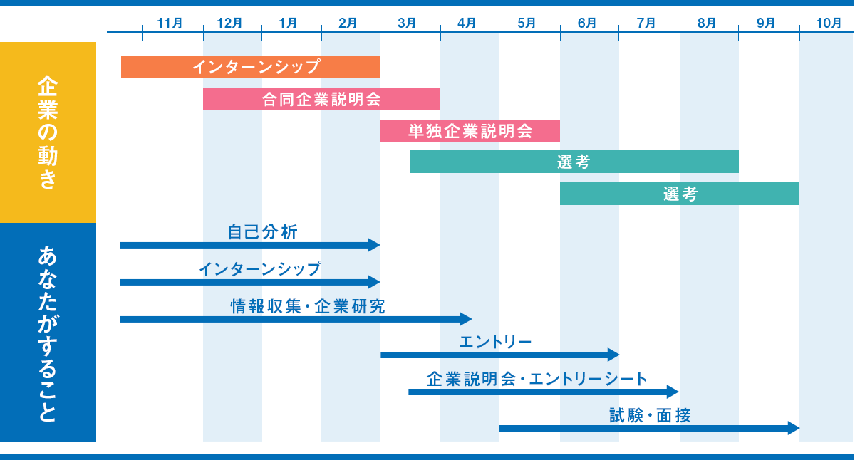 早いところでは、3月頃から企業の選考が行われています。