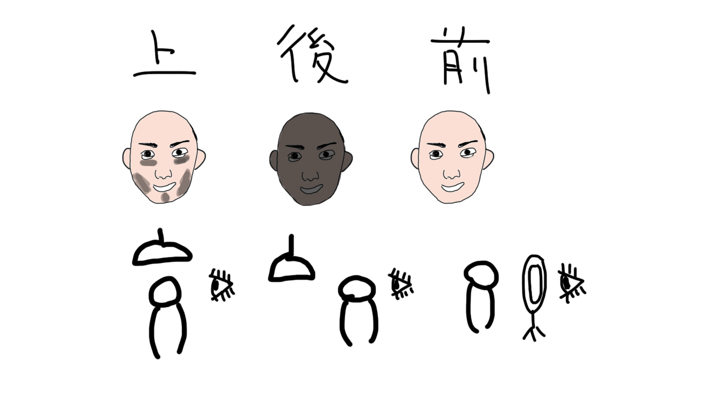 光源が天井の蛍光灯だけだと、座る場所によっては目の下に影が出来てしまいます。