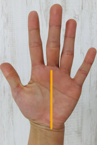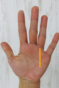 運命線が手首から中指にかけてまっすぐ濃く伸びている手相。