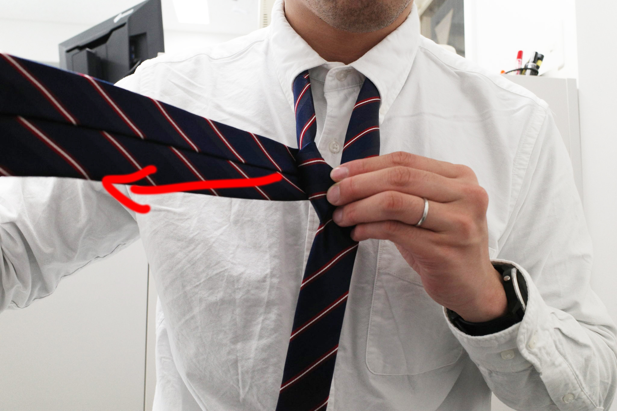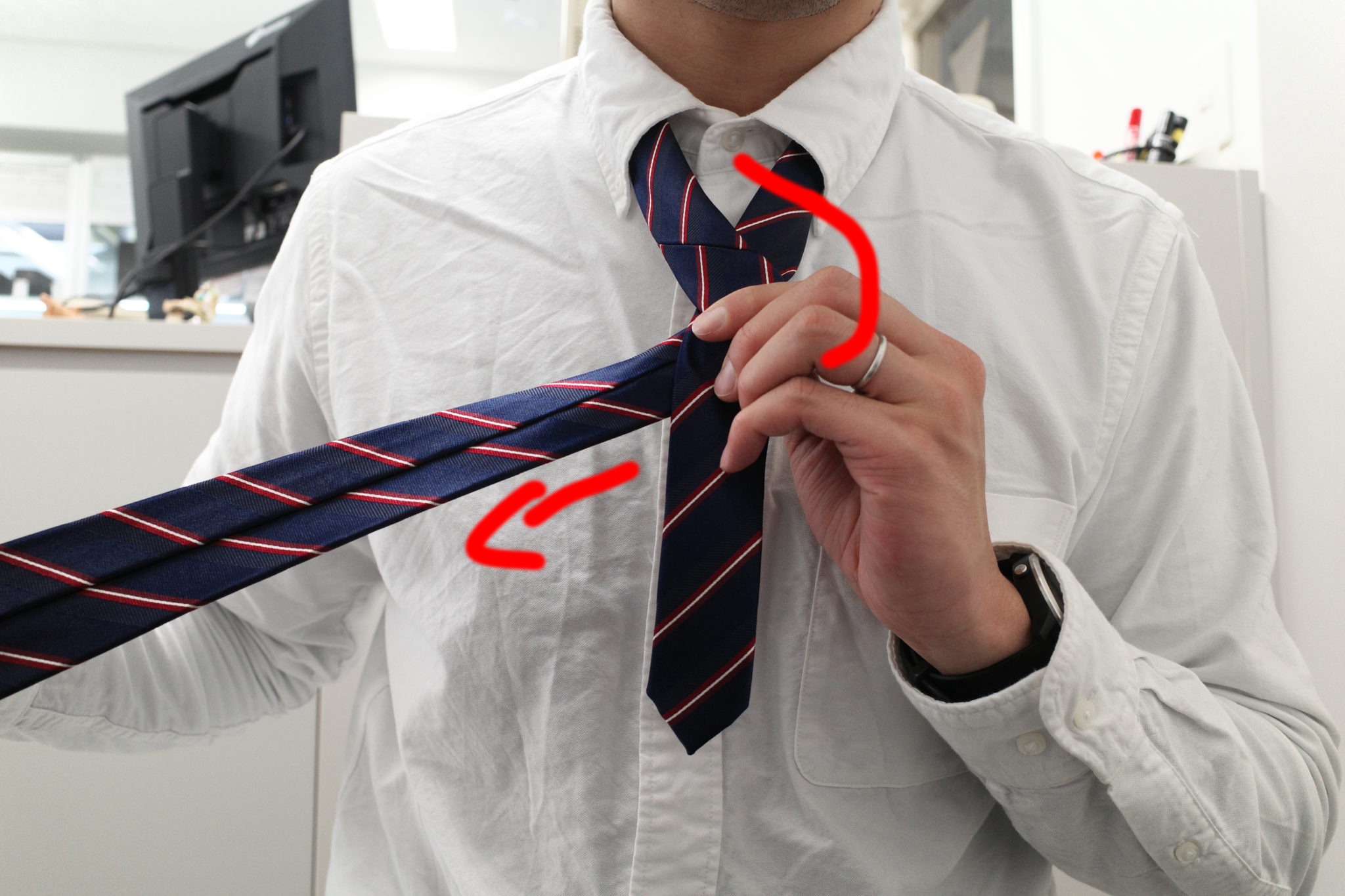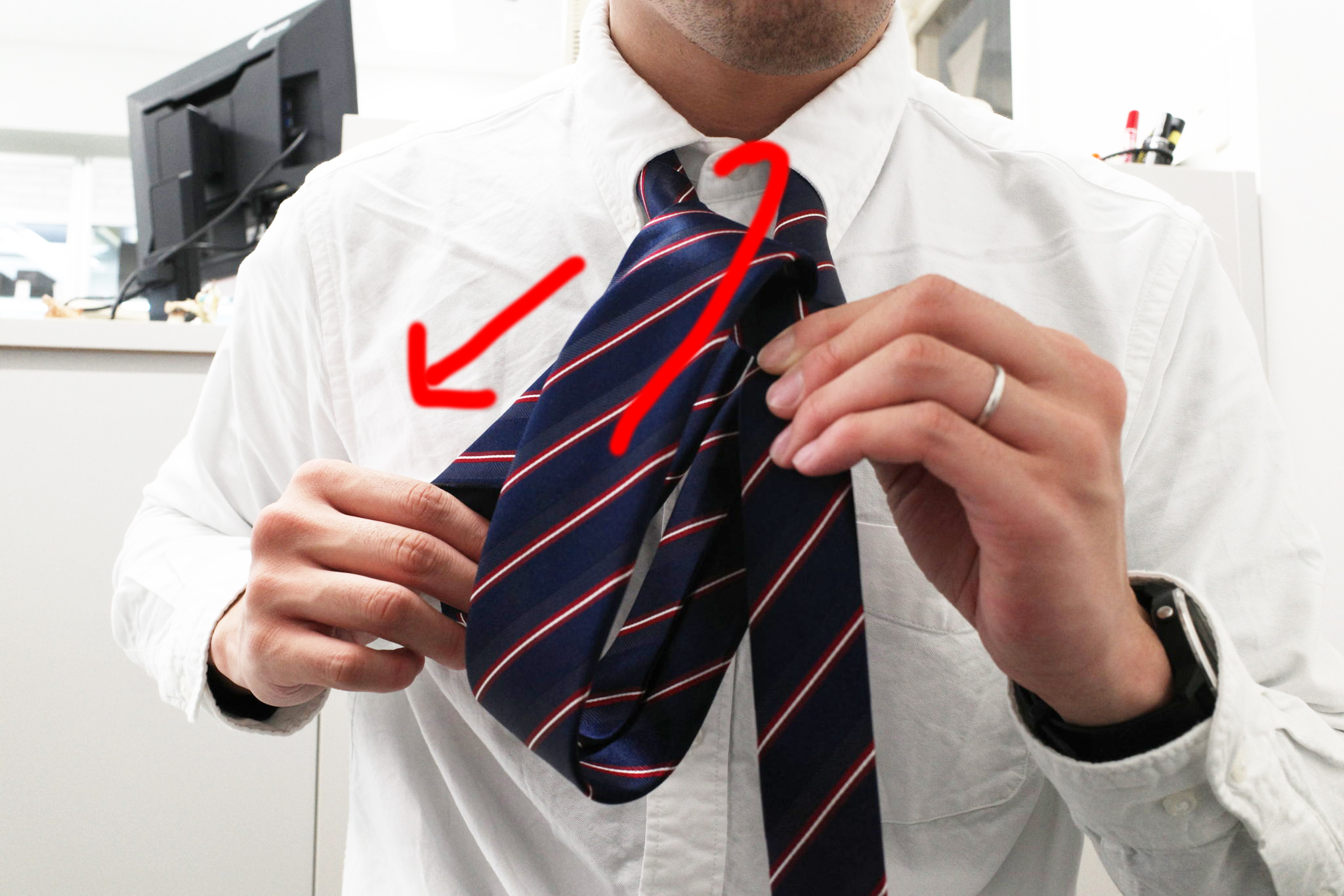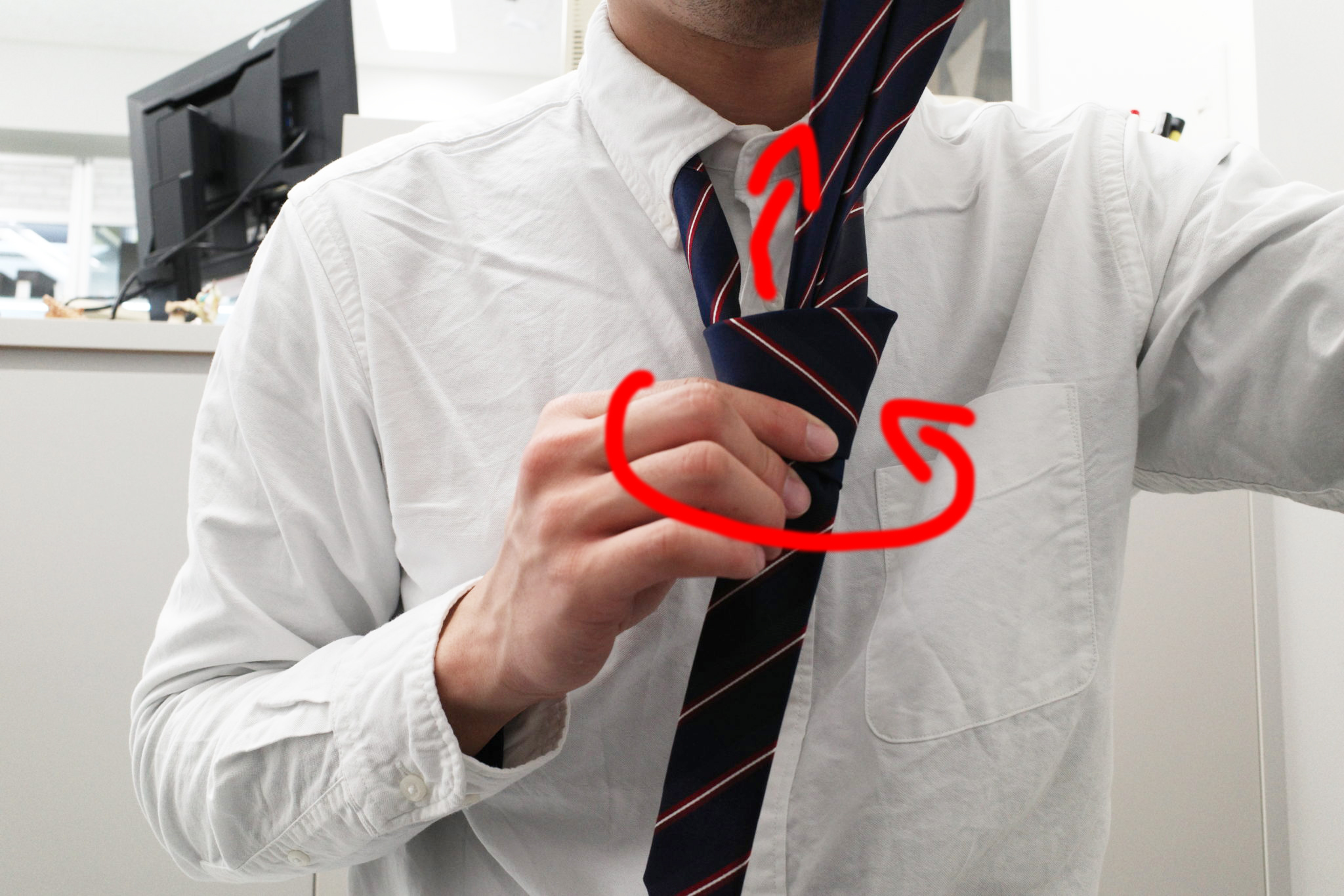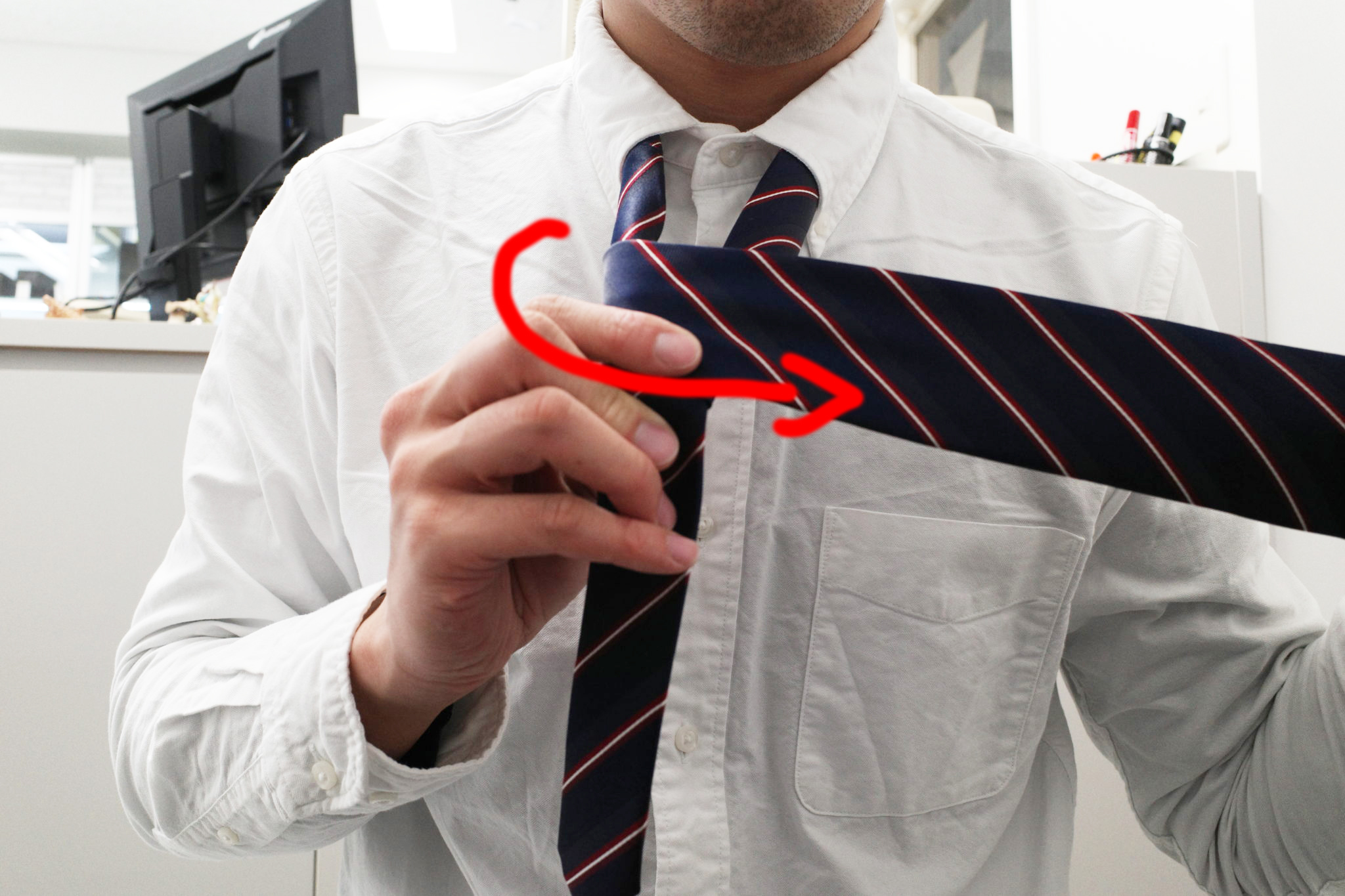 大体ネクタイ結ぶときってこんなんですよね。
