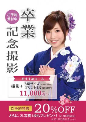 今年卒業の幼稚園、小学、中学、高校、短大、大学生の皆様、卒業記念撮影受付しております。