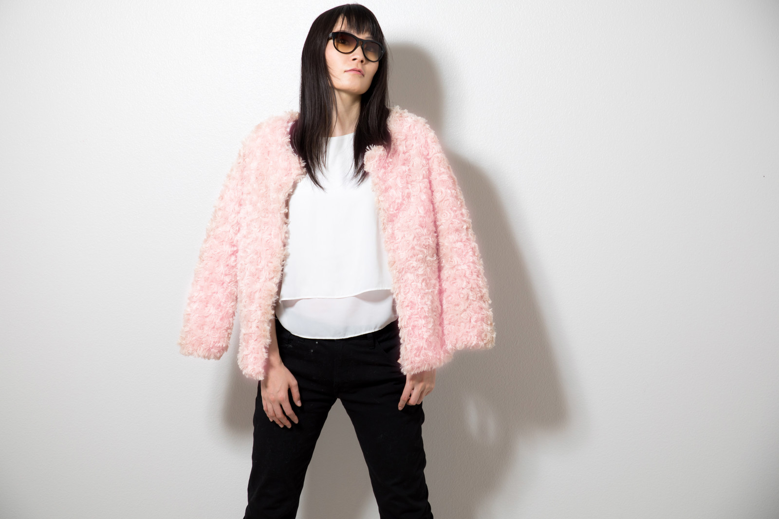 腰丈の、襟のついたジャケット・上着を羽織ってください。