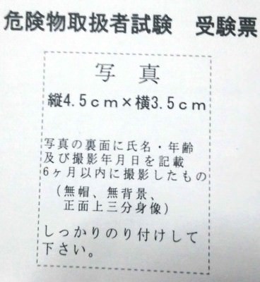 2015年4月19日に実施される危険物取扱者試験用の証明写真撮影を承っております。