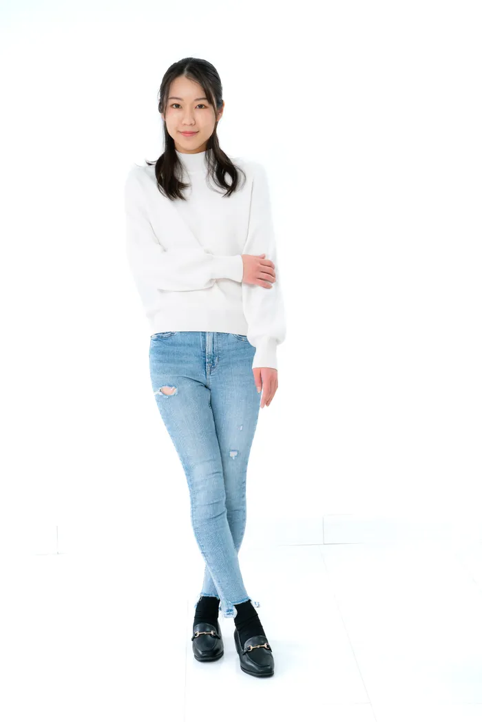 身体を斜めにひねる等、立体感のあるポーズが大事です。