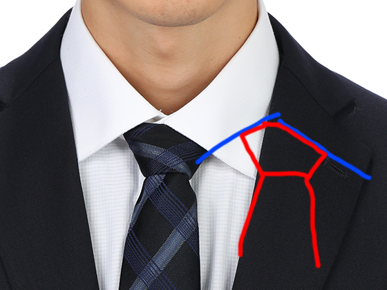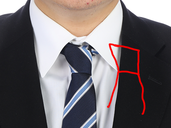 赤いラインはネクタイの形を分かり易く書いたものです。