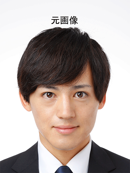 目を明るくしてスッキリ見せる。目元のシワを取ってより健康的に。髪の毛少し黒く。顎のライン整える。青髭消す(ほぼ判別不可)