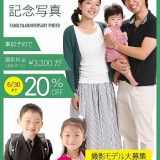 6月中に事前予約をいただければ、撮影料3300円のところを⇒20%オフの2,640円で撮影できます。(プリント、データ書き込み料は別途です、他の割引サービスとの併用はできません)