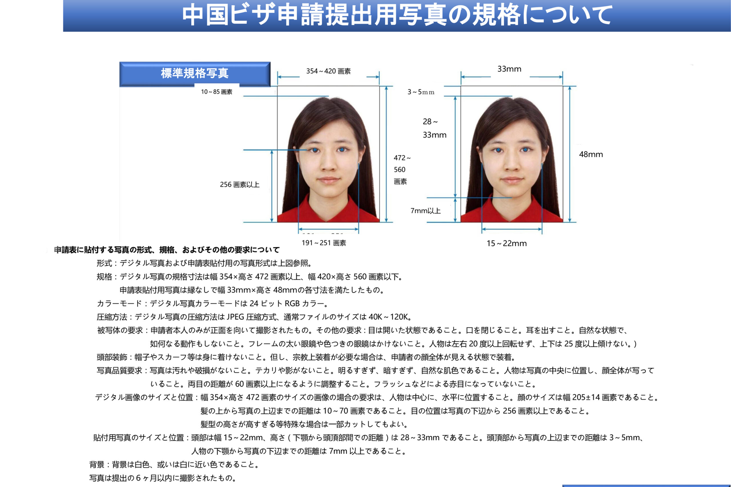 2.中国ビザ写真のサイズ規定について