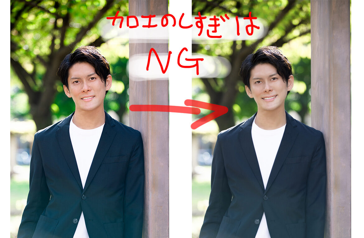 ニキビを消したりほうれい線を薄くしたり、ちょっと輪郭をしゅっとさせたり…。それこそ2カ月撮影時期がズレてれば変わる部分なんかはやっても良いと思います。