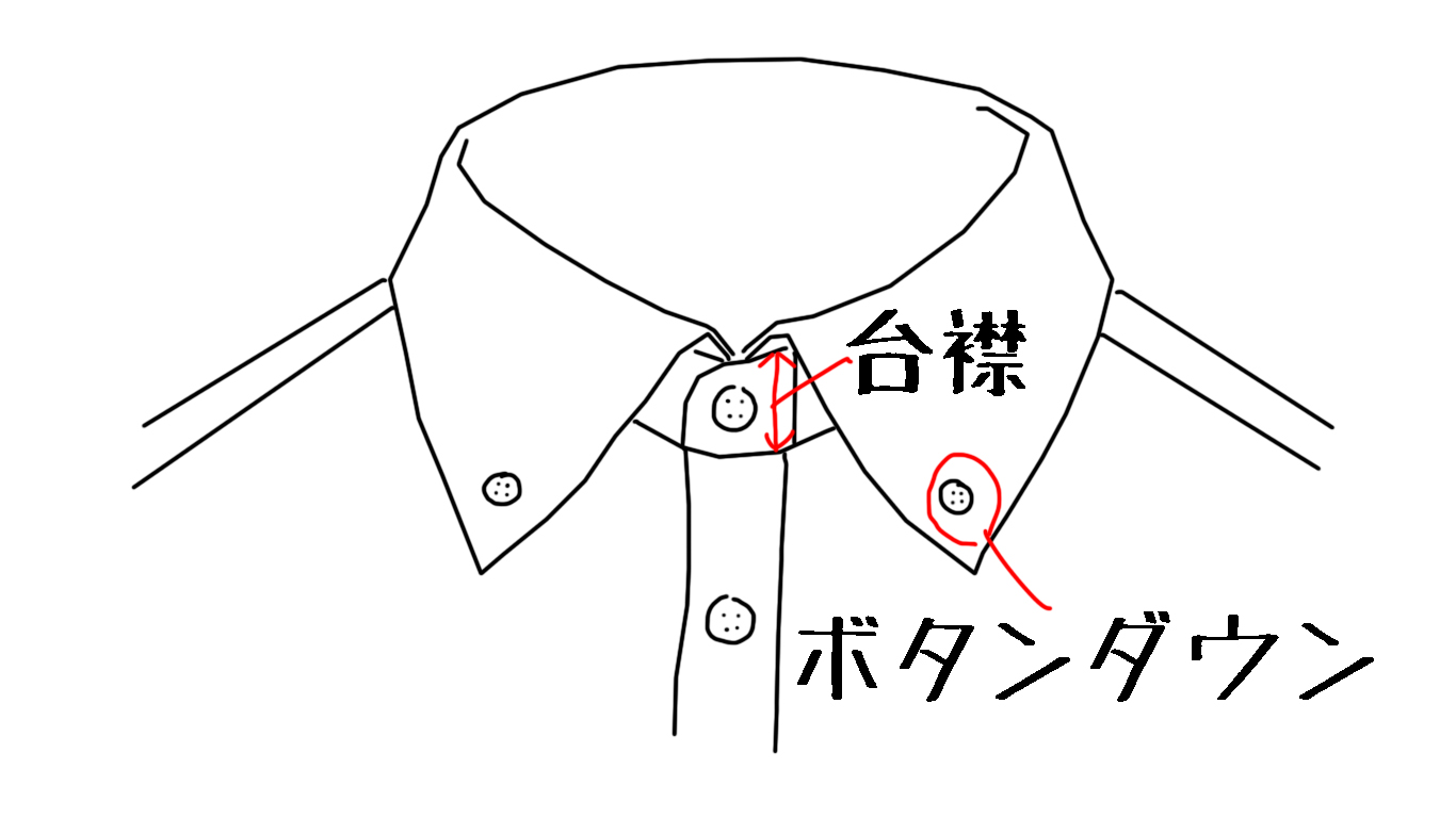 台襟が低いのにネクタイを結ぶと、ネクタイを首元まで締めた時に襟の先端(画像だとボタンダウンのボタンの辺り)が浮いてきてしまいます。