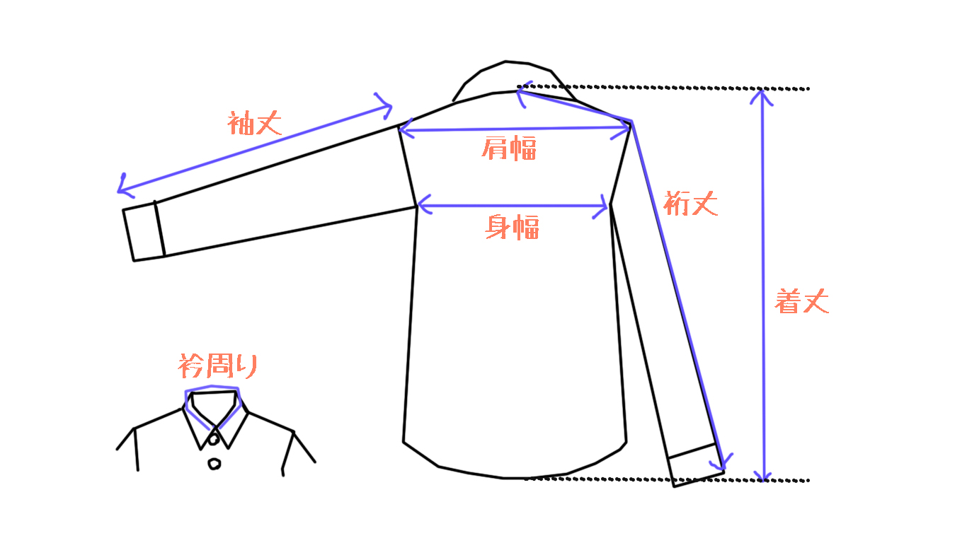 ワイシャツで重要なのは、襟周り・肩幅~身幅のサイズと、ワイシャツの種類です。