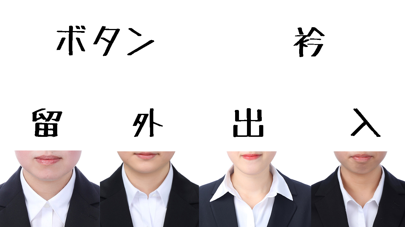 男女共にジャケットやワイシャツのサイズ感などは共通する部分ですが、女性ならではの悩みで、ワイシャツの襟やボタンをどうするか問題があります。