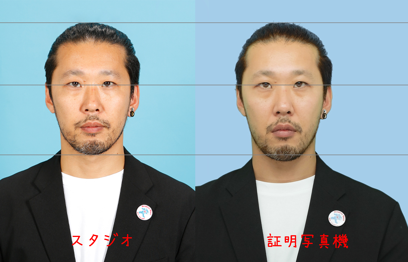 また、違うサンプルになりますが、証明写真機と写真スタジオの本気だとこれぐらい違うんです。