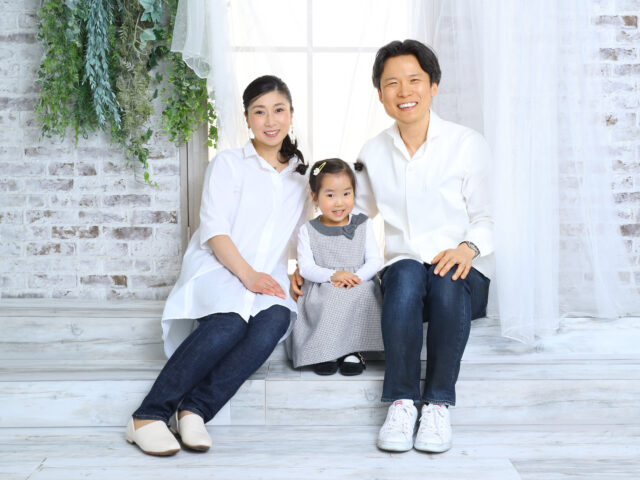 家族でテイストをそろえたリンクコーデは、写真全体にまとまりを生み出します。