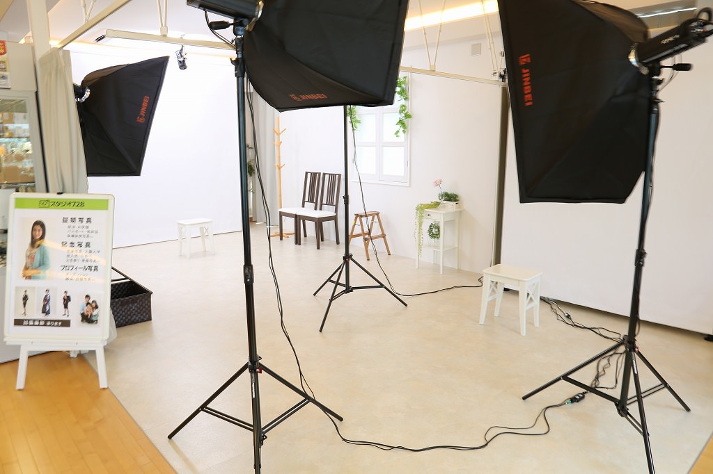 プロの撮影機材の整ったスタジオで撮影致します。もちろんプロのカメラマンが丁寧にアドバイスしながら撮影しますよ!