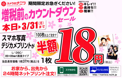 「増税前のカウントダウンセール」を実施いたしております。