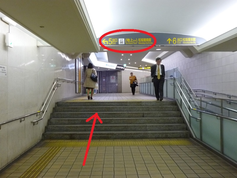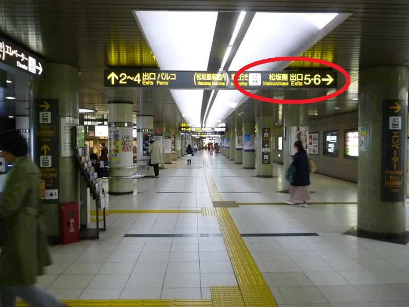 下の写真にある看板が見えますので、5番出口(松坂屋南館さん)を左に曲がってください。