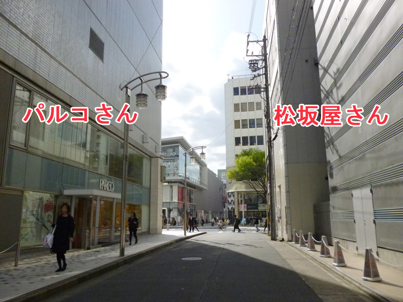 右に松坂屋さん、左にパルコさん、その間の道を通り、