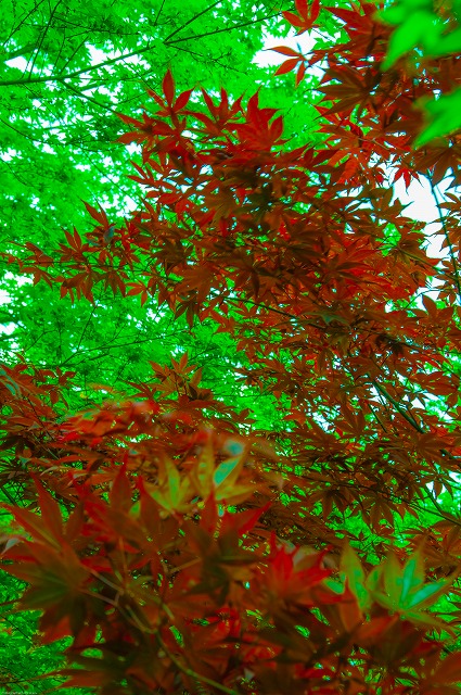 夏のショットにしては紅葉?新緑?まぎらわしい構図に遭遇しました。