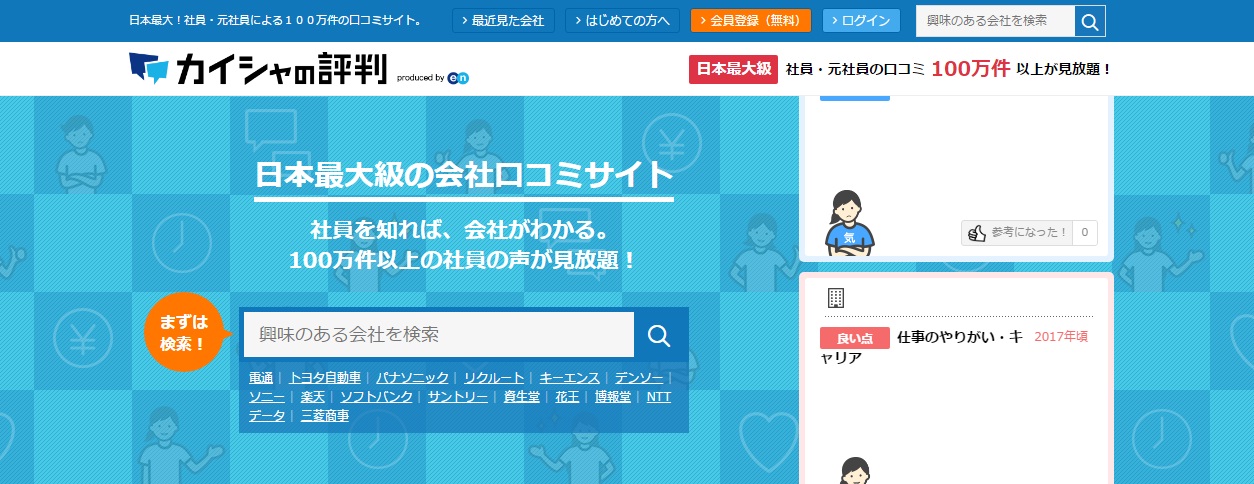 こちらの口コミサイトは、社員・元社員の口コミ100万件以上が閲覧可能で、会員登録をしなくても内容を見る事が出来ます。