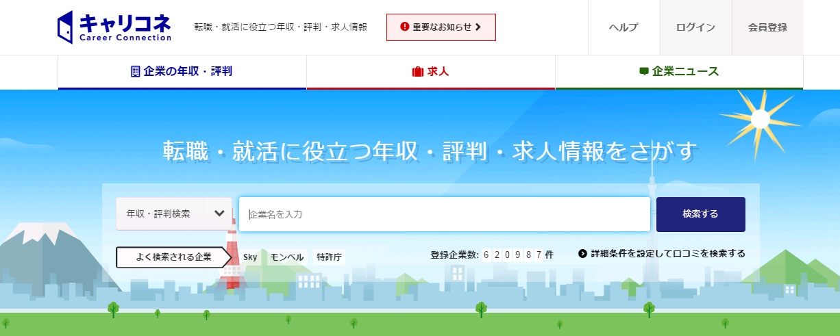 登録企業数620987件(2017.6.19現在)と多くの企業情報、口コミを閲覧する事が可能で、全口コミを確認するには、無料の会員登録が必要ですが、登録無しでも最初の1件目は見る事が可能です。
