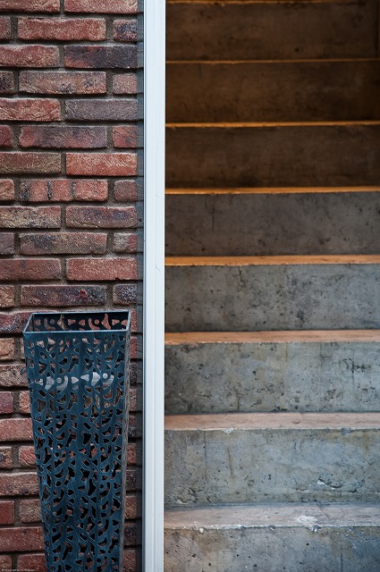 むき出しの階段が突然現れどうもナチュラル感の対比のように感じて