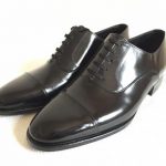 革靴は、光沢感のある底のすり減っていない出来るだけ新調された物を選び、黒も良いですが、お勧めは茶系統の革靴の方がマッチしやすいです。