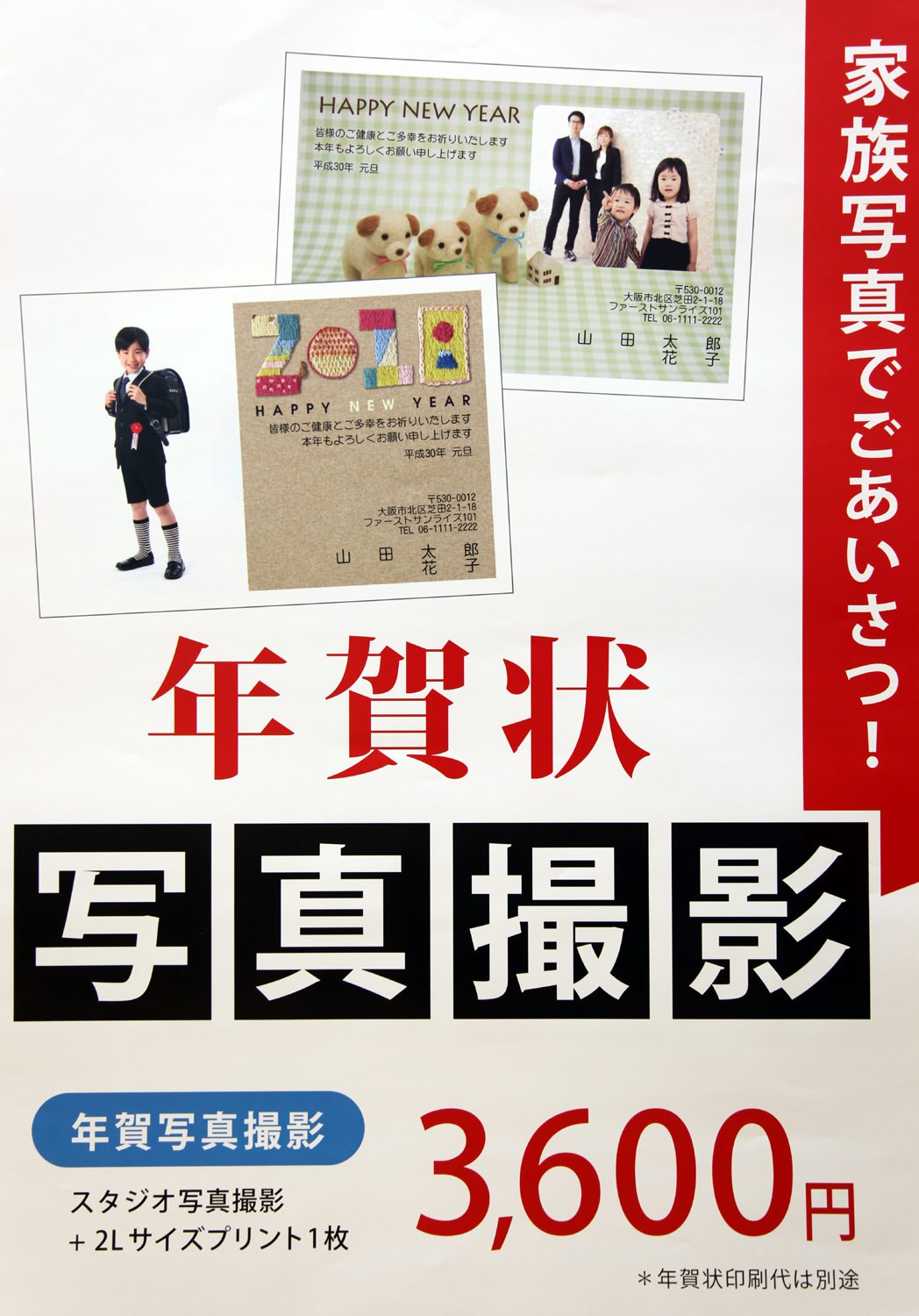 いつもはご旅行のお写真などで作っている方も、今年はご家族揃ってスタジオ728で撮影したお写真で、年賀状を作ってみませんか?