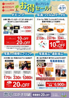 今週は、「夏のプリント お得セール!」のチラシを、JR原田駅前周辺の住宅地にポスティングさせていただきました。