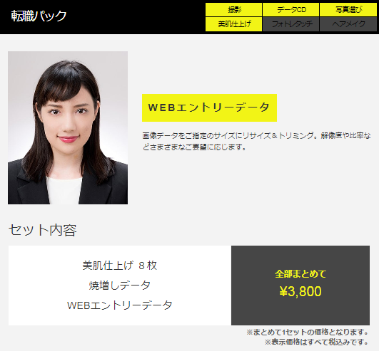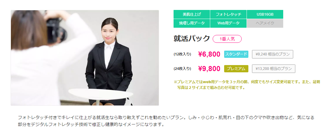 こちら、就活パックは12枚組と24枚組の2種類ご用意しております。