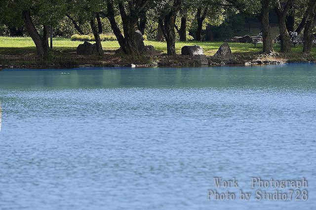 おほほ!湖畔とタイトルにつけさせてもらいましたが…実は、野池です。水面が白く反射しているのは、時間帯が