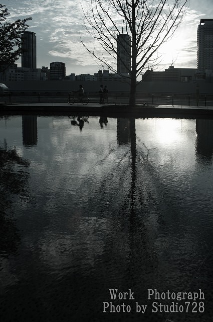 ですよ。どことなしか…自転車と木立に枝のシルエットが妙に白黒とのマッチングを