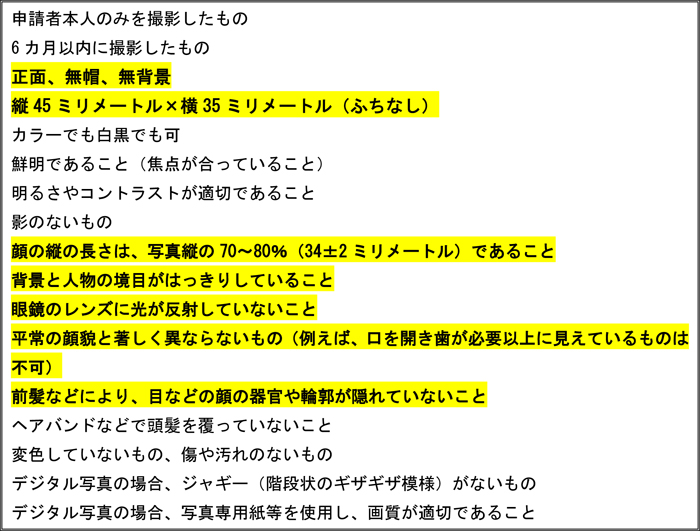 下にあるのは外務省のパスポート写真の規格等に記載されているものです