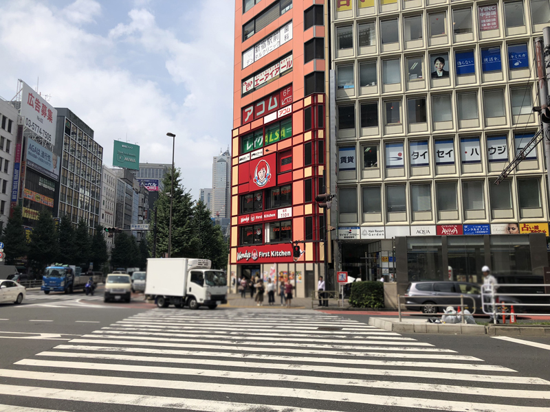 このバスタと南口を隔てている大きな通りが「甲州街道」で、これを都庁の方面、バスタに向かって右に曲ってまっすぐ歩きます。